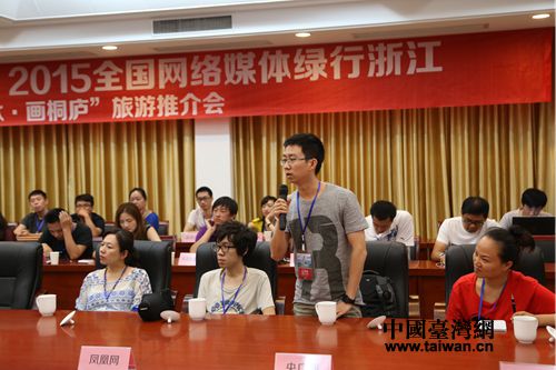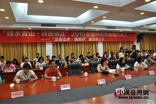 中國臺灣網記者9月8日杭州訊 (記者 趙燕)9月8日,由浙江省網信辦、浙江省旅游局、浙江省環保廳、浙報傳媒主辦,浙江在線新聞網站、浙報傳媒旅游全媒體中心主辦的“看晚報游浙江”主題推廣活動之“綠水青山 詩畫浙江”2015全國網絡媒體綠行浙江走進中國最美縣城桐廬。來自中國新聞社、人民網、國際在線、中國日報網、央廣網、中國臺灣網、中國報道、鳳凰網、搜狐網、新浪網等全國50多家網絡媒體記者攜手來到桐廬,感受這片富春山水的蝶變。