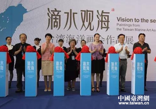 中國臺灣網9月1日寧波訊 8月29日,由寧波市臺辦、北侖區人民政府共同主辦的《滴水觀海——臺灣海洋畫會作品展》在寧波中國港口博物館開幕。寧波市臺辦副主任方晴,北侖區委常委、宣傳部長龔國文,副區長孫秀芳,寧波市美術家協會主席孫佩梁等領導出席了開幕式。開幕式上,臺灣海洋畫會創始人羅芳、理事長程代勒、副理事長陳俊卿等10位畫家,將本次展出作品捐贈給中國港口博物館收藏。