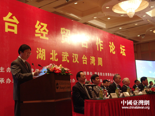 中國(guó)臺(tái)灣網(wǎng)10月8日武漢消息 今日上午九時(shí),由國(guó)務(wù)院臺(tái)灣事務(wù)辦公室重點(diǎn)支持、武漢市政府主辦的第三屆“湖北武漢臺(tái)灣周·漢臺(tái)經(jīng)貿(mào)合作論壇”隆重開(kāi)幕。國(guó)務(wù)院臺(tái)灣事務(wù)辦公室副主任孫亞夫、湖北省副省長(zhǎng)李春明、中共湖北省委常委、武漢市委書(shū)記苗圩分別致辭。