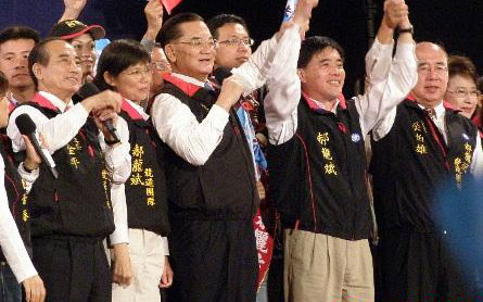 連戰呼吁臺北和高雄的市民,要讓同樣涉入弊案的謝長廷和陳菊敗選,來懲罰陳水扁。他說,“明天謝某人選輸了,陳某人選輸了,罪魁禍首是陳水扁先生還有他的夫人,還有他寶貝的女婿,這些人明天一定要為民進黨的大輸負起責任,不能夠脫身”。 (趙靜)
