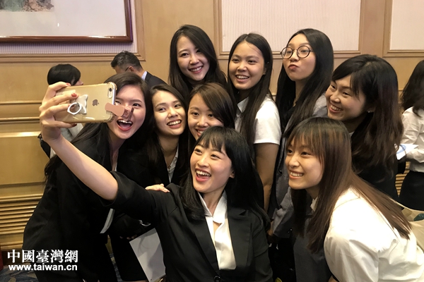 結(jié)業(yè)式現(xiàn)場(chǎng)同學(xué)們自拍留念。(中國(guó)臺(tái)灣網(wǎng) 趙苗青 攝)