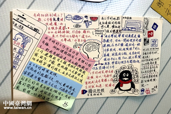 同學(xué)們制作的實(shí)習(xí)感受卡片。(中國(guó)臺(tái)灣網(wǎng) 趙苗青 攝)