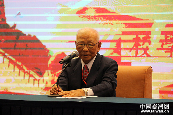 臺灣新同盟會原會長許歷農(nóng)出席論壇并致辭。(中國臺灣網(wǎng) 郜利敏 攝)