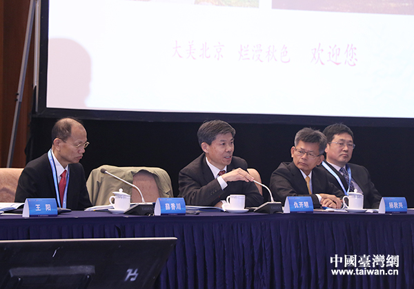 海峽兩岸關系研究中心主任仇開明作了題為《增強定力,促進兩岸經濟合作行穩致遠》主題演講。(中國臺灣網 普燕 攝)