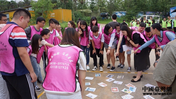 在隊(duì)名、隊(duì)旗設(shè)計(jì)環(huán)節(jié),兩隊(duì)心有靈犀,都借助“白馬關(guān)”寓意,分別取名“炭燒河馬”和“飛天白馬”。拓展項(xiàng)目由“急速60”“生命年輪”“鼓動(dòng)人心”和真人CS實(shí)戰(zhàn)對(duì)抗賽組成。比賽各環(huán)節(jié),兩地青年通力協(xié)作、密切配合,相互學(xué)習(xí)、各取所長(zhǎng)。尤其在真人CS實(shí)戰(zhàn)對(duì)抗賽,兩地青年在教官簡(jiǎn)要指導(dǎo)作戰(zhàn)要領(lǐng)后,便迅速展開巷道陣地對(duì)抗,偵查、營(yíng)救、狙擊、沖鋒……槍林彈雨的背景聲更讓實(shí)習(xí)生仿佛親臨戰(zhàn)場(chǎng),伴著汗水酣暢淋漓地?fù)]灑,也進(jìn)一步增進(jìn)了兩岸青年人之間的融合。經(jīng)過(guò)兩個(gè)多小時(shí)的切磋比拼,“炭燒河馬”小隊(duì)比分獲勝。