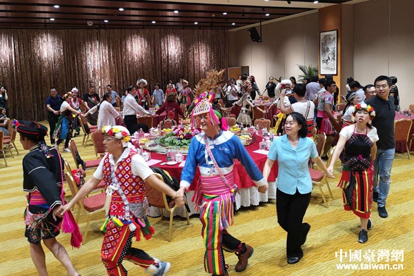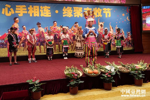 活動中,臺灣少數民族臺胞身著傳統民族服飾,展示臺灣傳統豐年祭的場景。(中國臺灣網 郜利敏 攝)