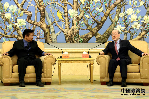 中共中央臺辦、國務院臺辦主任劉結一30日在北京會見參加第一屆兩岸民間圓桌論壇的臺灣代表。(中國臺灣網 尹賽楠 攝)