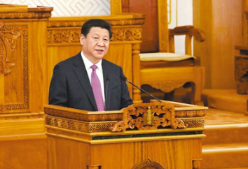2014年8月22日,國家主席習近平在蒙古國國家大呼拉爾發表題為《守望相助,共創中蒙關系發展新時代》的重要演講 (新華社記者 龐興雷 攝)