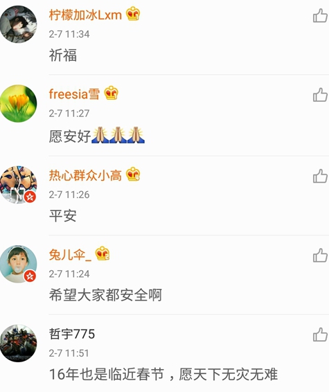 大陸網友紛紛為臺灣祈福。(圖片截取自新浪微博)