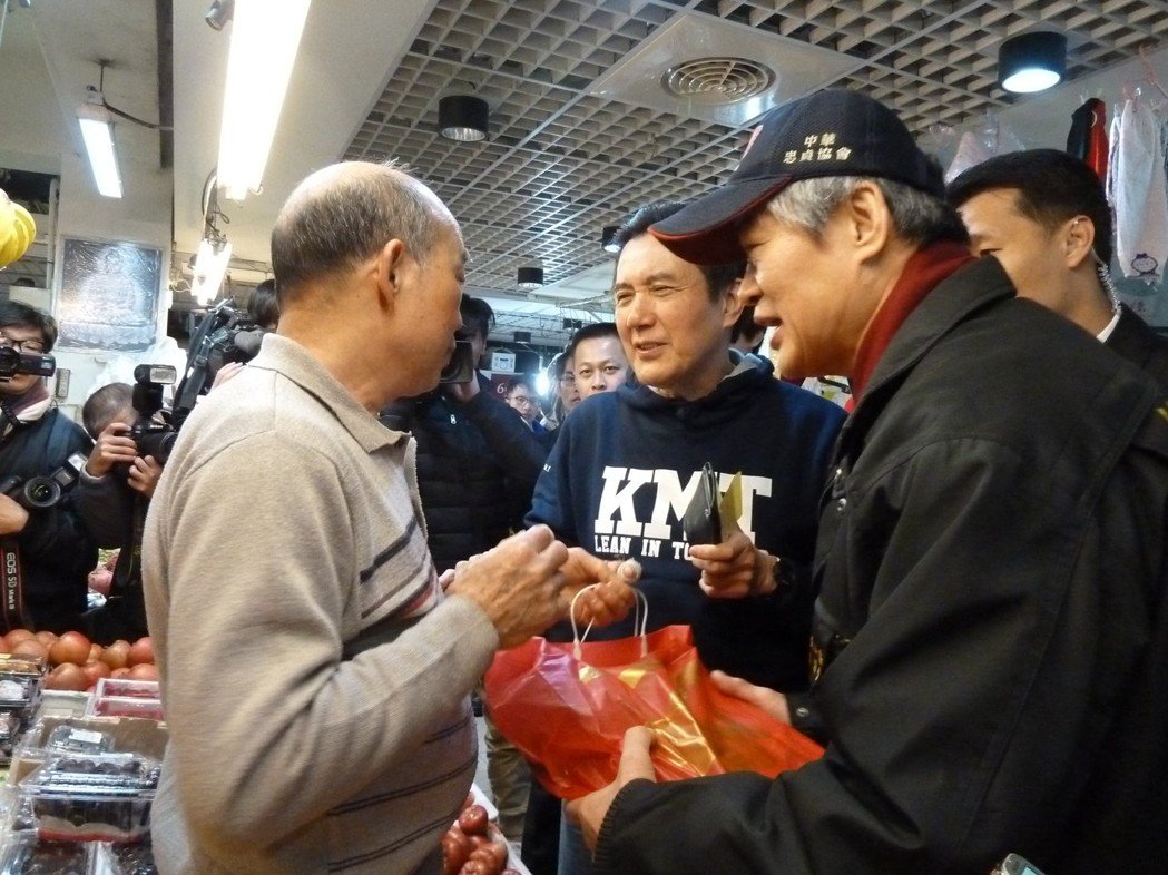 馬英九買年貨獲民眾熱情簇擁回應。(圖片來源:臺灣《聯合報》)