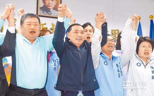 國(guó)民黨中央6日公布新北市長(zhǎng)初選民調(diào)結(jié)果,由前新北市副市長(zhǎng)侯友宜(左二)勝出。(圖片來(lái)源:臺(tái)灣《中時(shí)電子報(bào)》)