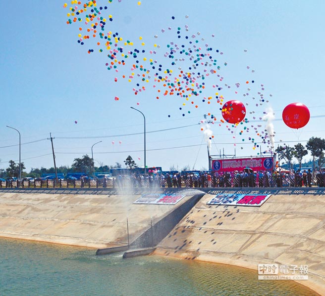 金門縣府昨日上午舉辦兩岸通水見證儀式。面對等了二十幾年的大陸水終于來了,金門當地民眾以辦喜事的心情,開心施放和平氣球。(圖片來源:臺灣《中時電子報》)