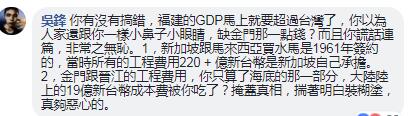 還有不少網友駁斥了王定宇的所謂臺當局為金門通水出資了13.5億的說法,直言“人家大陸出了19億呢,你怎么不講?”而對于“新馬買水”一事,有網友也表示“那是1961年簽的約了”,而且“買水”的條件跟金門根本不一樣好嗎?更有網友諷刺“福建的GDP馬上就要超過臺灣了,你以為人家跟你一樣小鼻子小眼缺金門那點錢”!