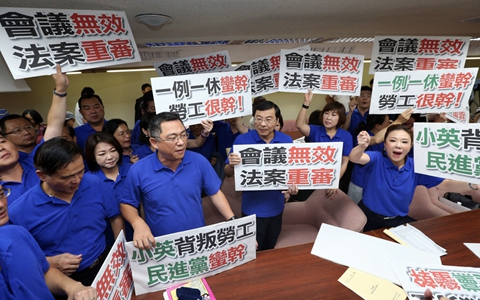 日前民進黨“立委”不顧勞團強烈反對,強行在一片混亂中通過“一例一休”修改草案初審,最快下月在臺灣“立法院”表決。民進黨“立委”的蠻橫行徑引起公憤,勞團聲言要在明年的地方選舉中制裁民進黨。去年民進黨當局硬推“一例一休”上路,結果民怨四起,不得不作出部分修改,但不僅未能平息坊間怒氣,反而又引發新一輪爭議!耙焕恍荨币呀洺蔀椴逃⑽漠斁謸]之不去的夢魘。