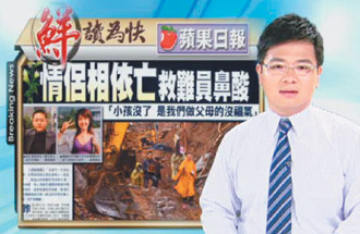 最難以解釋的一次,是他采訪一個(gè)命案現(xiàn)場(chǎng),一位外籍看護(hù)殺害主人后再跳樓自殺,他趕到現(xiàn)場(chǎng)時(shí),盡管有拉封鎖線,為求新聞完整呈現(xiàn),他仍走進(jìn)現(xiàn)場(chǎng),不料踩到地上血跡,從此,他便高燒不退,在友人的指導(dǎo)下,他到行天宮拜拜,才解除這個(gè)難以解釋的高燒不退。