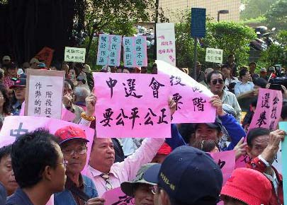臺灣民眾到“中選會”所在辦公大樓下表達訴求,希望選舉能公平公正進行。