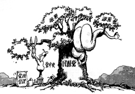 與之相反,民進黨內的派系斗爭卻是紛爭未已。盡管“四大天王”退出政治舞臺,由沒有政治包袱的“小龍女”蔡英文來統管黨權,祈能帶出清新的黨務風氣。但事與愿違,十三屆中常委、中執委及中評委選舉所暴露的派系門爭,仍未結束。昨日有關邱太三請辭高雄市副市長,陳水扁推薦陳其邁接任的消息,再次燒起了派系斗爭的火頭。