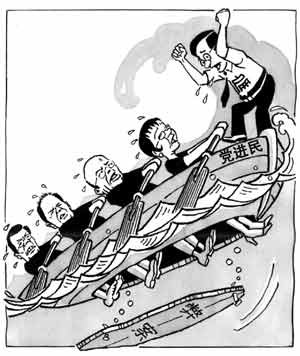 再就第二種“政治權力的爭奪”來看,臺灣的政治設計可以說是“贏者全拿”的制度,在經過幾次的修憲以后,政治設計不但沒有“雙贏”或“共贏”的機制存在,甚至已經淪落到“你死我活”的境地,這就讓臺灣政治權力的爭奪要比一般民主制度更為慘烈。在這種“你死我活”的斗爭環境中,二○○○年阿扁獲得政權時,雖然他曾經想作一個“全民總統”,但延續到二○○二年的八月三日“一邊一國”提出以后,阿扁為了維護政權,不得不放棄“全民總統”的期望,回歸到綠營這一邊。