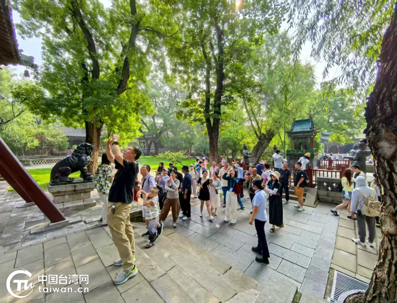 圖為兩岸媒體人在晉祠采風(中國臺灣網發)