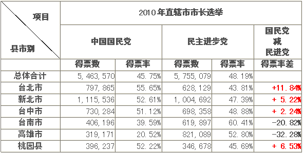 那么,這六市選舉的走勢如何,我們不妨借用歷史的數據看個究竟。從2010年直轄市市長選舉的得票率差看,國民黨優勢稍顯。
