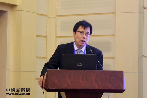 中國社會科學院臺灣研究所副所長、研究員張冠華發表主題演講。(中國臺灣網 張潔 攝)
