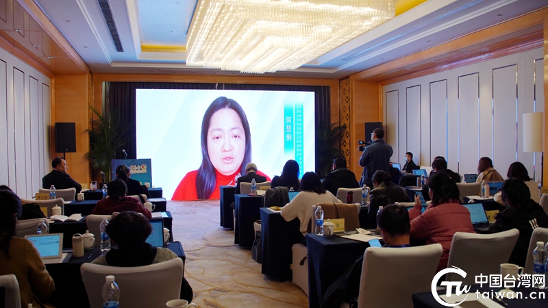 天津大學臺灣研究所副所長、中華兩岸新時代交流協會學術研究中心主任何慧俐通過視頻方式進行主旨演講。(中國臺灣網 符海川 攝)