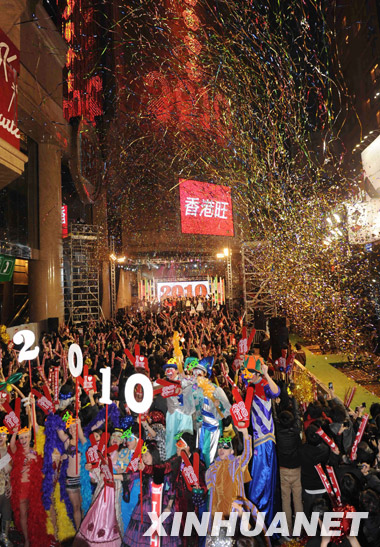 1月1日凌晨,參加慶典的人群歡呼新年的到來。香港民眾在時代廣場舉行“愛香港迎2010”倒計時大派對,共同迎接新年的到來。新華社記者陳鐸攝