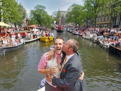 中新網8月4日電 荷蘭阿姆斯特丹市長科恩8月1日為五對同性戀人主持婚禮,掀起該市支持同性戀者年度水上大游行的高潮。
