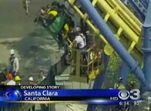 事故發生在加州圣塔克拉拉市的美國主題公園(Great AmericaThemePark)。據該市消防部門官員奧吉·威德曼介紹,當地時間中午12點15分,過山車載著興奮的游客向整個軌道的最高點進發,“就在即將要上爬的時刻突然停了下來”。