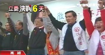 據臺灣“中廣新聞”報道,“立委”選舉前夕最后一個超級星期天,連戰特地南下高雄縣為4名國民黨“立委”候選人吳光訓、江玲君、鍾紹和和林益世站臺造勢,馬英九也再度南下,陪同江玲君和吳光訓到眷村掃街拜票。
