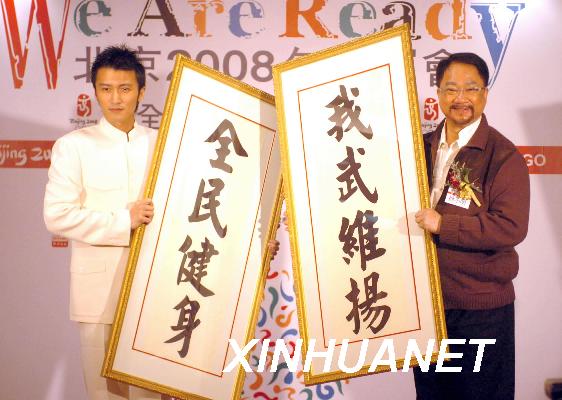資料圖片:1月14日,中國(guó)香港藝人、“全民健身之星”謝霆鋒(左)與徐小明在新聞發(fā)布會(huì)上展示武術(shù)牌匾。當(dāng)日,香港舉行迎奧運(yùn)倒計(jì)時(shí)200天“全民健身迎奧運(yùn)”新聞發(fā)布會(huì),公布香港將在1月21日舉辦迎奧運(yùn)倒計(jì)時(shí)200天慶典活動(dòng)。新華社記者盧炳輝攝
