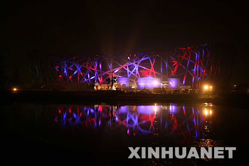 資料圖片:國(guó)家體育場(chǎng)(鳥(niǎo)巢)在五彩燈光的映照下璀璨亮麗。 新華社記者邢廣利攝