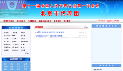 十一屆全國人大一次會議新聞中心網(wǎng)站的北京市代表團(tuán)主頁(來源:網(wǎng)站頁面截屏)