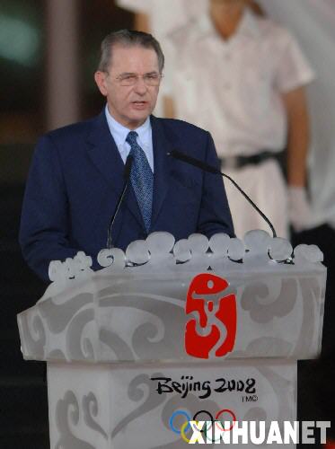 國際奧委會主席羅格多次強調反對將奧運會與政治掛鉤。圖為2007年8月8日,國際奧委會主席羅格在活動中致辭。當晚,北京2008年奧運會倒計時一周年慶祝活動在天安門廣場舉行。 新華社記者羅曉光攝