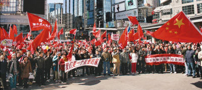 3月29日,加拿大多倫多市中心的Dundas 廣場舉行了“宣傳西藏真相,維護祖國統一”大型集會,集會由中國留學生組織,得到各界華人的廣泛支持。 吳 敏攝