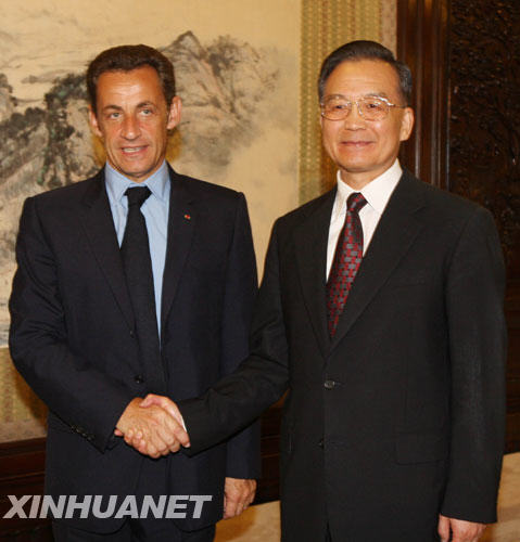 在會(huì)見法國(guó)總統(tǒng)薩科齊時(shí),溫家寶說(shuō),法國(guó)是中國(guó)在歐盟的重要伙伴。薩科齊總統(tǒng)最近表達(dá)了對(duì)中國(guó)人民的良好祝愿和致力于推動(dòng)中法全面戰(zhàn)略伙伴關(guān)系發(fā)展的愿望,我們表示贊賞。中方珍惜兩國(guó)和兩國(guó)人民之間的合作與友誼,希望中法關(guān)系的全面性、戰(zhàn)略性和長(zhǎng)期性能夠保持下去。我們?cè)概c法方加強(qiáng)磋商與協(xié)調(diào),推動(dòng)第十一次中歐領(lǐng)導(dǎo)人會(huì)晤和第七屆亞歐首腦會(huì)議取得積極成果,促進(jìn)中歐關(guān)系和亞歐關(guān)系深入發(fā)展。