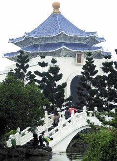 背景資料:臺北市“中正紀念堂”于1980年完工啟用,是臺北市著名地標,原陳水扁當局發動“去蔣化”,在2007年將其改為“臺灣民主紀念館”,“中正紀念堂”牌匾被更換為“臺灣民主紀念館”,“中正紀念堂”前主牌樓上“大中至正”牌坊也被換為“自由廣場”,其間曾引發激烈沖突。