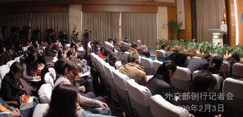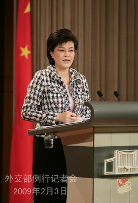 2009年2月3日,外交部發(fā)言人姜瑜舉行例行記者會(huì),就中美關(guān)系、中歐關(guān)系、朝鮮半島局勢(shì)等回答了記者提問。