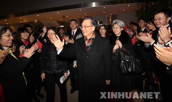 2月1日,中國國務院總理溫家寶赴華為技術有限公司英國分公司看望員工并與在英部分中資企業的代表舉行座談。新華社記者姚大偉攝