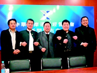 由臺灣85度C上海區總經理孫武良(左起)、永和豆漿董事長林炳生、上海臺灣連鎖加盟產業商務中心董事長王國安、大陸巴貝拉餐廳董事長陳韋興、和成衛浴董事長邱士楷等人共同發起的“ 中華兩岸連鎖經營協會”,預定在4月2日成立。臺灣《聯合報》圖