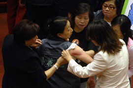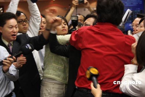 2008年10月22日:臺灣“立法院”教育委員會又爆發(fā)嚴(yán)重肢體沖突,兩位女“立委”動起手來,互相甩巴掌、抓臉。