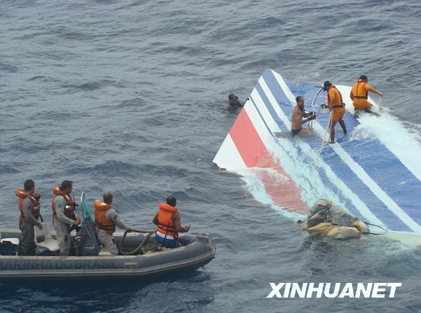 6月8日,在巴西東北部城市累西腓東北部1200公里的海域,巴西海軍在打撈失事的法航A330客機殘骸。巴西空軍和海軍8日在巴西東北部城市累西腓舉行的新聞發布會上將已打撈上來的法航遇難者遺體數目更正為16具,而不是7日晚間他們宣布的17具。 新華社發