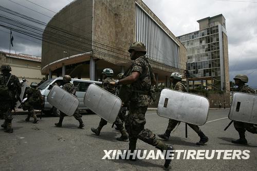 6月28日,在洪都拉斯首都特古西加爾巴,士兵抵達議會大樓。洪都拉斯議會正在此召開緊急會議,討論該國當前的政治形勢。洪都拉斯最高法院28日宣布對現任總統曼努埃爾·塞拉亞的罷免決定,并稱28日凌晨洪都拉斯軍方拘押及強行驅逐總統的行為合法。 新華社/路透
