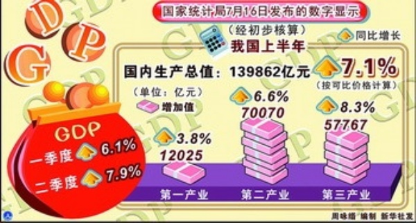 從一季度的6.1%到上半年的7.1%,GDP增長幅度和勢頭使各方面對我國完成全年8%的增長目標更有信心。