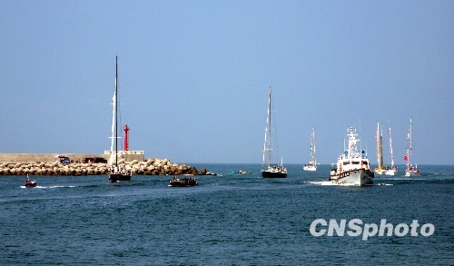 七月三十一日日上午,參加首屆“海峽杯”帆船賽的十五艘重型帆船安全駛?cè)虢K點——臺南市安平港。從廈門出發(fā),兩岸一百三十多名運動員歷經(jīng)約二十小時拉力賽航行,完成首個穿越臺灣海峽的體育賽事。
