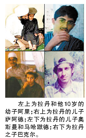 拉丹家族人丁興旺,他有50多個同父異母的兄弟姐妹。拉丹的父親是沙特阿拉伯的建筑業(yè)大亨,很多當地的大型項目都是老拉丹手下的集團負責承建的。目前,藏在伊朗的家人過著和普通人一樣的生活。不過,伊朗政府始終極力否認拉丹本人及其家人藏身該國的說法。