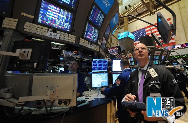 5月6日,交易員在美國紐約證券交易所內(nèi)工作。當(dāng)日,在歐洲債務(wù)危機(jī)的重壓下,紐約股市當(dāng)天暴跌,截至收盤,三大股指的跌幅均超過3%,而道瓊斯指數(shù)盤中瞬間曾一度下跌近1000點(diǎn)。新華社記者申宏攝