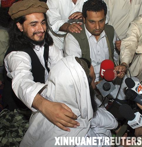 8月8日,據(jù)巴基斯坦當(dāng)?shù)仉娨暸_(tái)報(bào)道,巴基斯坦塔利班當(dāng)日在召開會(huì)議選舉新領(lǐng)導(dǎo)人時(shí),巴基斯坦塔利班發(fā)言人哈基姆拉·馬哈蘇德和另一名重要頭目瓦利烏爾·拉赫曼分別領(lǐng)導(dǎo)的兩個(gè)武裝組織發(fā)生火拼,哈基姆拉被拉赫曼打死,后者也被打傷。這是2008年5月4日在巴基斯坦的南瓦濟(jì)里斯坦拍攝的哈基姆拉·馬哈蘇德(左)的資料照片。新華社/路透