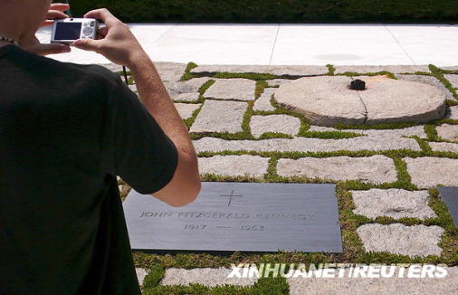 8月26日,在美國弗吉尼亞州的阿靈頓國家公墓,一名悼念者在美國前總統約翰·F·肯尼迪的墓前拍照。新華社/路透