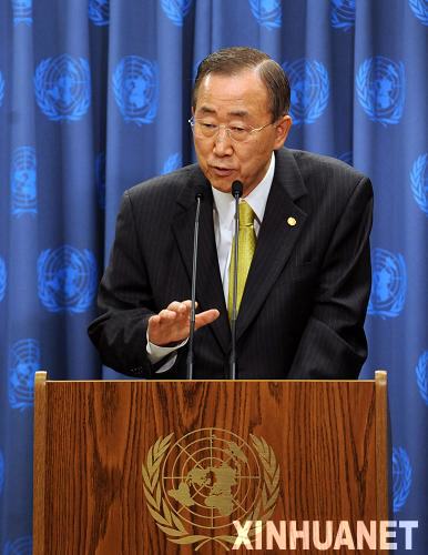 9月29日,在美國紐約聯(lián)合國總部,聯(lián)合國秘書長潘基文在記者會上回答關于伊朗核問題的提問。潘基文在記者會上說,伊朗應該提早向國際原子能機構報告其建設新的鈾濃縮工廠的事實,并敦促伊朗允許國際原子能機構進行全面核查。新華社記者申宏攝